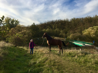 Přes 4 měsíce jsme chodili na procházky, pracovali na lonži až jsme se dostali pomalu do sedla na první vyjížďku. Naší dlouhou přípravou předcházíme možným nedorozuměním a myslím, že se nám to povedlo 👌.