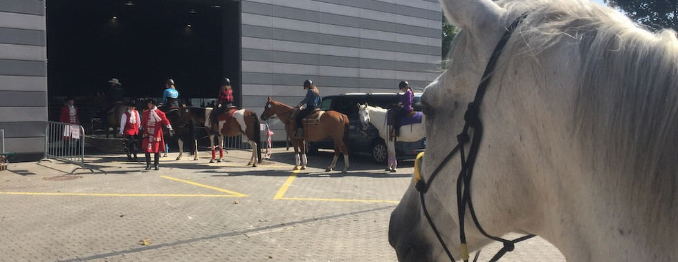 Nástup i výstup z vozíku na jedničku. Zvládli spoustu zvířat, lidí, strojů, hudbu, vlajky .... no máme z nich radost.